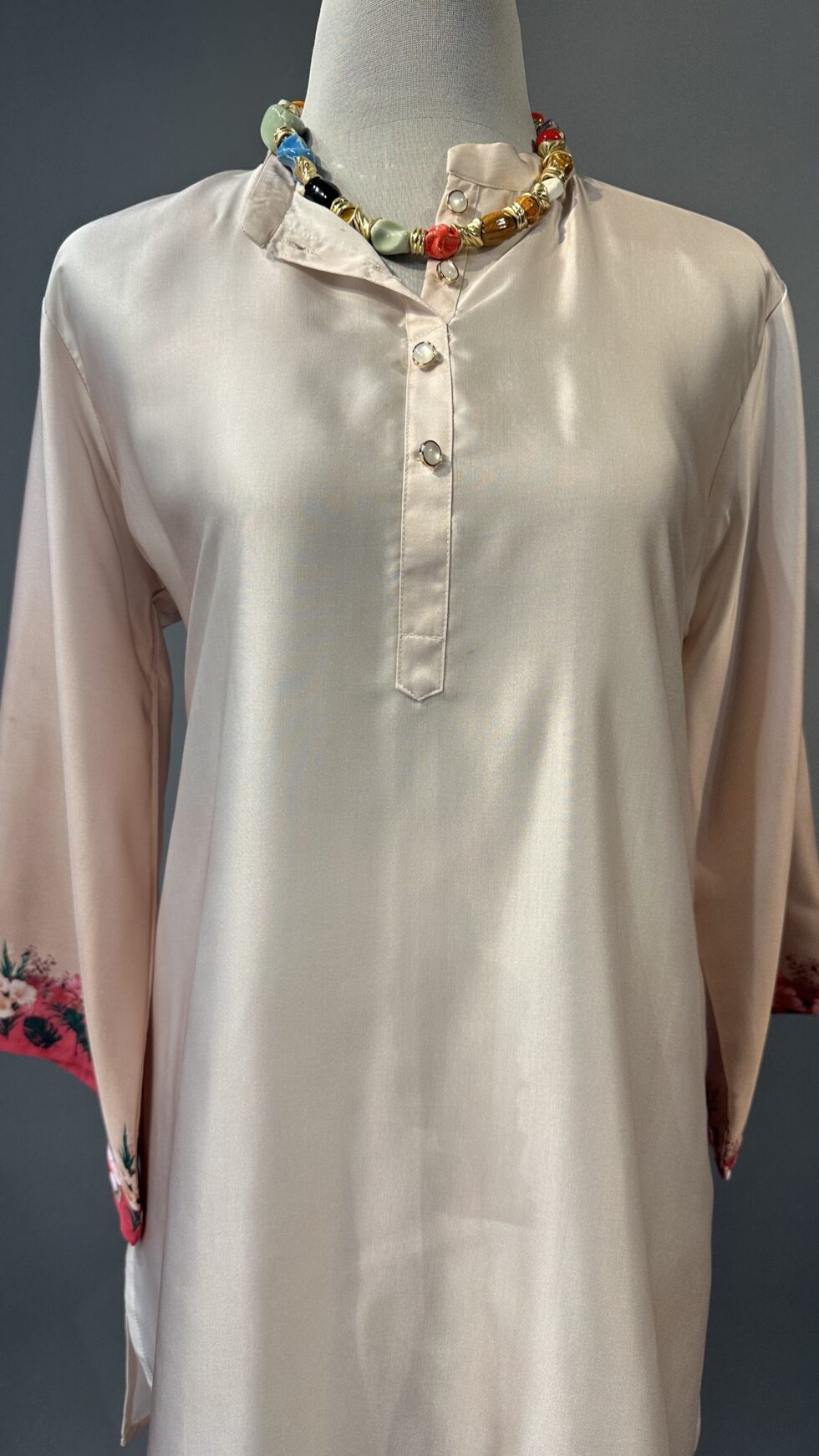 Designed for both comfort and impact, the top offers a relaxed fit with full sleeves, while the matching straight or tapered pants ensure a sleek, flattering finish. Ideal for day events, casual soirées, or elevated everyday wear, this set is a celebration of understated style with a modern twist.