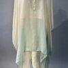 A striking fuchsia pink crepe kaftan set featuring golden sequin embellishments on the neckline and armholes. Paired with matching pants, this elegant ensemble blends comfort with festive charm.
